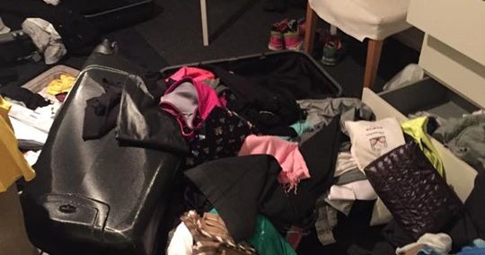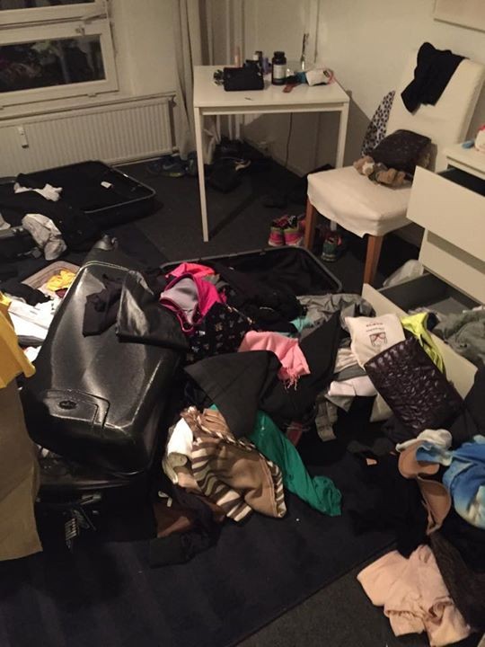 "Esse foi o estado em que encontramos o apartamento que alugamos em Berlim, através do #Airbnb no dia 26/09 (noite anterior à Maratona de Berlim). Entraram no apartamento (sem sinal de arrombamento) e levaram todos os itens de VALOR (e “somente” itens de valor entre bolsas, roupas, óculos, pashiminas, etc). Um prejuízo somado em mais de 12 mil euros. Deixaram algum dinheiro e todos os documentos. Acredito eu, para que não fosse preciso contatar as autoridades e o roubo tomasse dimensões maiores.